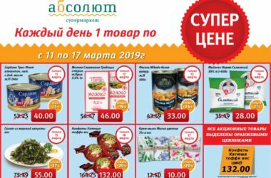 Сеть Супермаркетов Абсолют, предлагает вам каждый день 1 товар по супер цене! Акция проводится во всех Супермаркетах Абсолют! Товар на неделю: с 11 марта по 17 марта 2019г Став, участниками [подробнее]