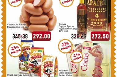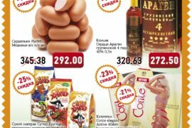 Сеть Супермаркетов Абсолют предлагает вам товар по лучшим ценам! Сардельки ЛугМК Медовые в/с н/о вес — 292.00 рублей за килограмм! Коньяк Сердце Арагви грузинский 4 года 40% 0.5л — 272.50 [подробнее]